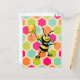 A happy honey bee with his scoop of honey. A cool hexagon hive shaped background in vintage colours of pink, blue, orange and green.