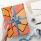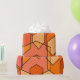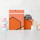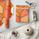 This wrapping paper has a Bauhaus-inspired design of overlapping hexagons in shade of orange.