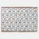 This throw blanket has a mid-century modern design made of hexagons chained together with a circle on a peg inside each.