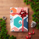 This wrapping paper has mid-century modern design of hexagons in many colours with black and white circles inside them.