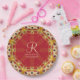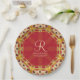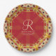 Hexagon Love Red Gold Monogram Custom Name Paper Plate