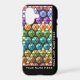 Sleek and beautiful case features a classic quilt pattern w/ a modern art look due to offset placement against a glossy black background + warm, pleasing colour palette. Using triangular pieces only, the arrangement of colours and shading create an ever-changing illusion of 3-D blocks, multi-coloured hexagons + 6-pointed stars. 2 custom text fields for your name.