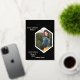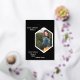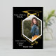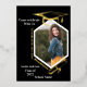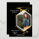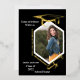 Your photo in a hexagonal frame with gold foil mortarboard and diploma on a black background for a graduation party invitation. Photo Credit: Photography © Storytree Studios, Stanford, CA