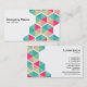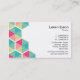 An attractive modern business card template decorated with a hexagons motif each segmented and in a palette of five harmonious colours and rotated. The same motif is repeated on the reverse however is arranged to the left. Company name and business type on the front aligned to the left with name, position and other contact details on the other side aligned to the right. This card can be customised in a variety of different ways and is suitable for many type of business.