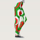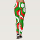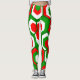 These leggings have a Christmas geometric design of hexagons in sets of three that look like flowers in red, white, and green.