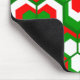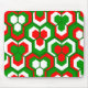 This mouse pad has a Christmas geometric design of hexagons in sets of three that look like flowers in red, white, and green.
