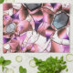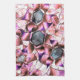 Hexagons surrounded by pinkish petal-like shapes tea towel