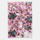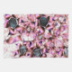 Hexagons surrounded by pinkish petal-like shapes tea towel