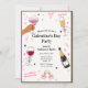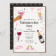 A trendy Galentine's Day invitation with gold frame border featuring the phrase "hey babe!" alongside illustrated cocktail glasses, champagne bottle, hearts, and ribbons. Perfect for a fun and stylish celebration with your besties. The playful yet sophisticated design includes plenty of space to customize with your party information for an unforgettable Galentine gathering.
