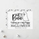 A playful Halloween message floats across a crisp white background, anchored by bold typography and a cheerful ghost illustration beside the word “Boo.” The design blends festive charm with modern simplicity, capturing the spirit of spooky fun in a clean, stylish layout.