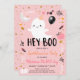 Hey Boo Pink Ghost Halloween Birthday Invitation