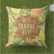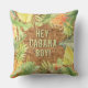 The words "Hey, Cabana Boy!" are featured on these outdoor patio pillows highlighted with watercolor tropical flowers, fruits and leaves on a woven wicker print pattern. You can choose indoor material, too (Delete or change the words.) MATCHING items in our store.