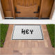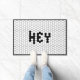 This classic black and white faux hex tile design doormat reads "HEY". Such a fun addition to any front door!