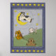 Hey Diddle Diddle Nursery Rhyme nursery poster, cute and fun, great for your baby's nursery, features a cow jumping over the moon, cat and the fiddle, the laughing dog, and the dish and spoon as well as lots of stars in a deep blue sky!