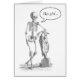 Stylish, intricate vintage illustration of a standing skeleton from the 19th century, with the full skeleton displayed leaning very relaxed on an animal skull that has been propped up on its nose. Cleaned up to decorate any item in a stylish and modern way. Add your own text to this skeleton drawing if you please or just enjoy the detailed black and white Victorian art.