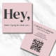 Hey Modern Minimal Bold Typography QR Code Pink Square Business Card