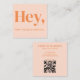 Hey Modern Minimalist Bold Colourful QR Code Peach Square Business Card