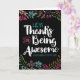 Thank someone with this unique, typography design, featuring the message, "Hey! Thanks Being Awesome. You're Kinda Good at That!". Fun, colourful floral accents border the design. Inside can be customised with your message but has this placeholder text. I realise more than ever that being awesome comes naturally for you. That said, I'm still amazed at how you share your "AWESOME" with me. THANKS!