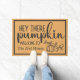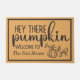 This mat is a fun addition to your fall porch decor that features 'Hey there pumpkin' in complimenting scripted fonts and includes the words 'Welcome to' above your family name or favourite text. Design includes a hand drawn pumpkin and vines. Customise by adding your name and change the background colour, if desired, using the design editing tool.