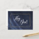 Send a message to tell them your thinking of them with one of our custom postcards. Adorned with a fun and classic denim and gold design with hand scripted letters the phrase Hey You! on the front. Customise the back with your address. View our full selection of greeting cards in our Zazzle store!