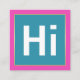 A modern and contemporary design with a bold "Hi" and brilliant colours and a gold border.