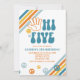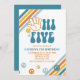 Groovy Hi Five Retro inspired 5th birthday invitation with 70's style fonts and colours.