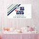 Hi Five Retro Style Birthday party banner with retro blue stripes.