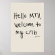 Hi MTV Welcome to My Crib Poster, Mid Century Print, Aesthetic wall art, 70s Monochrome Wall Art, Bauhaus Print, Typography Print, MTV Poster