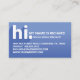 Make a great first impression and introduce yourself to potential clients with our "hi my name is" business cards. The design features "hi" in a modern typographic design with a diagonal text shadow. Stylish blue gradient adds a modern bold look. Personalise with your name, title and contact information. The reverse side is designed in clean minimal style with personalised monogram and social media handle.