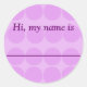 Dotted name tags/lapel stickers in shades of lavender. Great to use for introductions during various events.