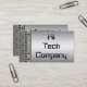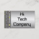 Stainless steel metal look surface smooth chrome in the middle for your name or company name. The background is a hi-tech, futuristic silver with bright green pixels or LED lights. A bold, unique modern business card. Easily customise with your own information. The perfect professional looking card especially for technical fields, computer, gaming, tech repair, and electronic related businesses. More information can be put on the back as well onto the same metal background. A strong business card that stands out from the rest.