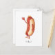 If you are hosting a barbecue, you own a small hot dog business, or you just want to say hi in the cutest way possible, this minimalist hot dog postcard will get the job done. This adorable postcard has a cartoon illustration of a hot dog with mustard. The sausage has arms and legs. A stripe of mustard runs along its body. A little mustard flicks are depicted as its hair. At the bottom of the illustration you can find the text in a very simple grey font. The sentiment says "Hi there" which combines perfectly well with the hot dog since it's waving. Personalise the text with your own message if necessary.