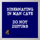 Hibernating in Man Cave Do Not Disturb with caveman graphic.