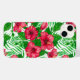 Watercolor pattern design with hibiscus flowers and palm leaves