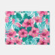 Watercolor pattern design with hibiscus flowers and palm leaves