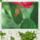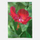 In this stunning image, a red hibiscus flower is highlighted against a mottled green background.