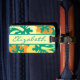 Customise this pattern of hibiscus flowers in a pattern / background in Emerald, lemon sorbet, ivory white and orange colours that you can personalise. The back is ready to personalise and add a name, address and phone number.