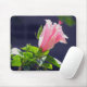 Bring a bit of the garden into your home with this Mouse Pad featuring a photo of a lovely pink flower. The original photograph by MaeFlowers is a closeup of a hibiscus not yet in full bloom. Morning sunlight shines through the pale pink petals and highlights the spring green leaves. The distant background in soft focus is a dusky blue colour.