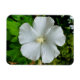 Close up of a white Hibiscus flower with a fully developed pistil following rainfall