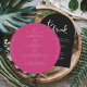 Elevate your wedding reception with the chic and contemporary Hibiscus Pink | Modern Round Wedding Menu. This vibrant and stylish round menu features a bold hibiscus pink background with elegant white typography, perfect for adding a modern touch to your table settings. Customisable with your unique menu selections, this design ensures your guests will appreciate the attention to detail.