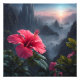 This vibrant painting captures the beauty of a pink hibiscus flower in full bloom against a backdrop of majestic mountains at sunset. The soft hues of pink and orange create a peaceful and serene atmosphere, making this a perfect piece of art for any home.