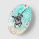 A stylised tribal turtle design with intricate patterns is centred on a turquoise background, surrounded by delicate pink hibiscus flowers. The scene evokes a fun, beachy feel with its blend of nature-inspired elements.