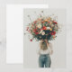 A person dressed in casual jeans and a simple white top holds an enormous bouquet of wildflowers that completely obscures their face. The large, colourful arrangement of daisies, poppies, and other vibrant blooms contrasts with the minimalist background and attire, creating a striking visual that emphasizes the beauty of nature. The scene exudes a sense of whimsy and serenity, as the flowers take centre stage, symbolising growth, life, and simplicity.
