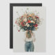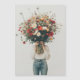 A person dressed in casual jeans and a simple white top holds an enormous bouquet of wildflowers that completely obscures their face. The large, colourful arrangement of daisies, poppies, and other vibrant blooms contrasts with the minimalist background and attire, creating a striking visual that emphasizes the beauty of nature. The scene exudes a sense of whimsy and serenity, as the flowers take centre stage, symbolising growth, life, and simplicity.