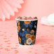 Hidden in the roses, orange and blue paper cups