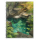 A beautifully illustrated notebook cover featuring a serene stone pool surrounded by lush greenery. Gentle sunlight filters through the leaves, illuminating the crystal-clear turquoise water. Perfect for adventurers, dreamers, and nature lovers who find inspiration in hidden sanctuaries.