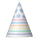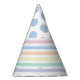 Introducing our delightful customisable birthday paper hat, specially designed for twin boys! This charming collection features an adorable illustration of two raccoons giving each other a high five in front of a birthday cake. Perfectly capturing the playful spirit of your little ones. Fun colourful balloons in the background giving that celebration vibe. The party hats picks ups the colourful stripes from the others designs in the same colletion, fun and colourful.