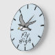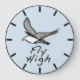 Ornithologist gift. High flying bird against a blue sky. Slogan says Fly High. Clock for an ambitious person. Birder wall clock. Clock for a bird watcher maybe.