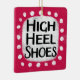 "High Heel Shoes" is a fun text design with a white accent shape surrounded by white whimsical textured dots.