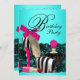 High Heel Shoes Teal Blue and Pink Zebra Party Invitation
